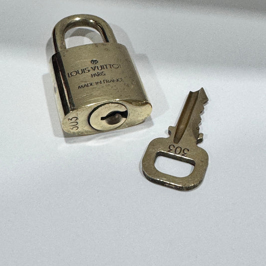 Louis Vuitton Gold Padlock & Key Set LV Brass Lock 303