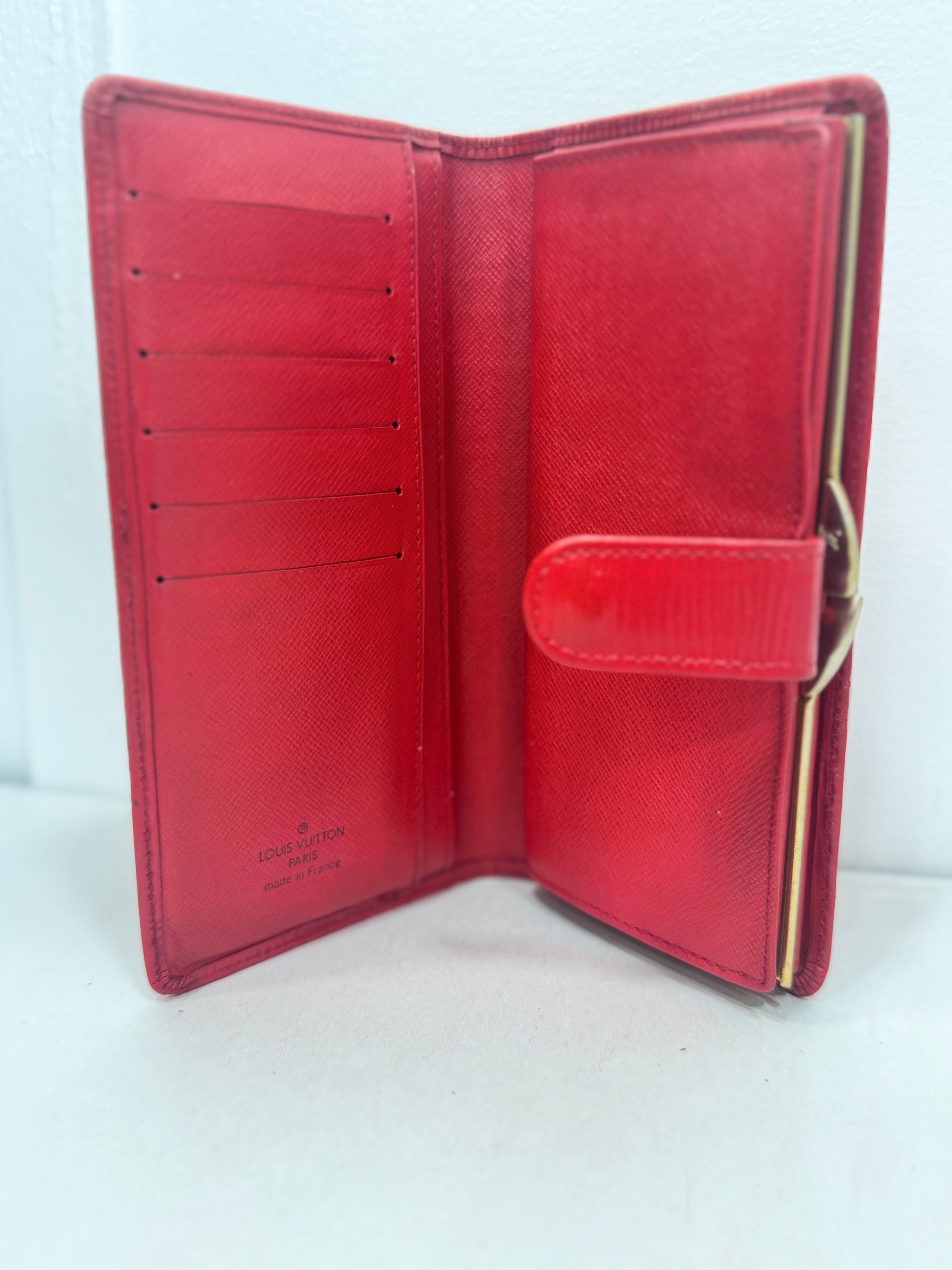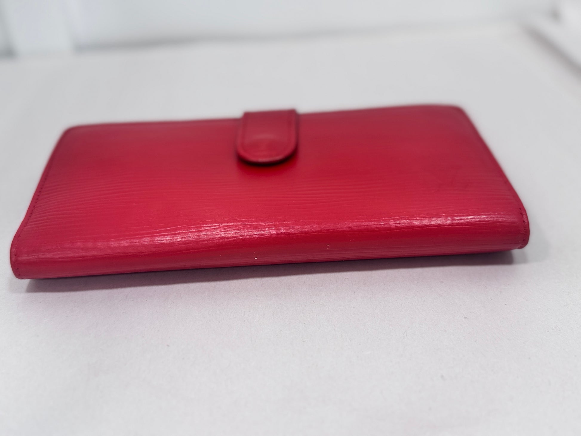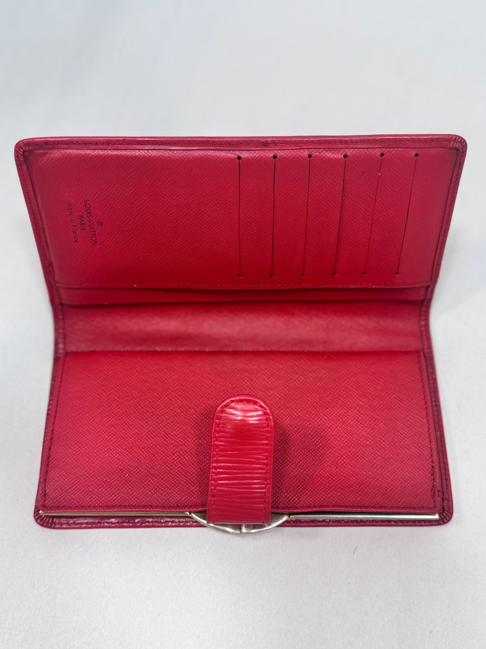 Louis Vuitton Red Epi French Purse Kiss Lock RARE Long Wallet – With COA