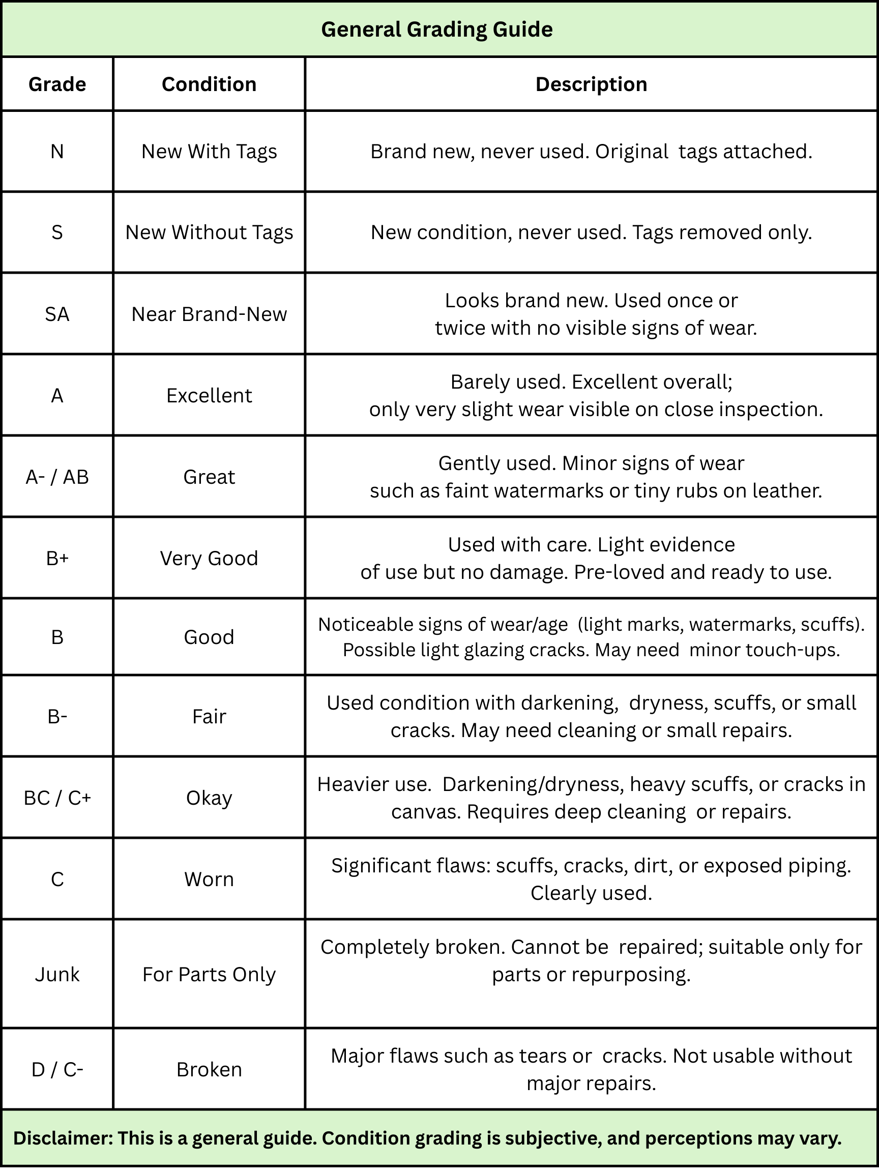 Grade: B+ light wear to hardware and edges consistent with age, still very beautiful and functional
