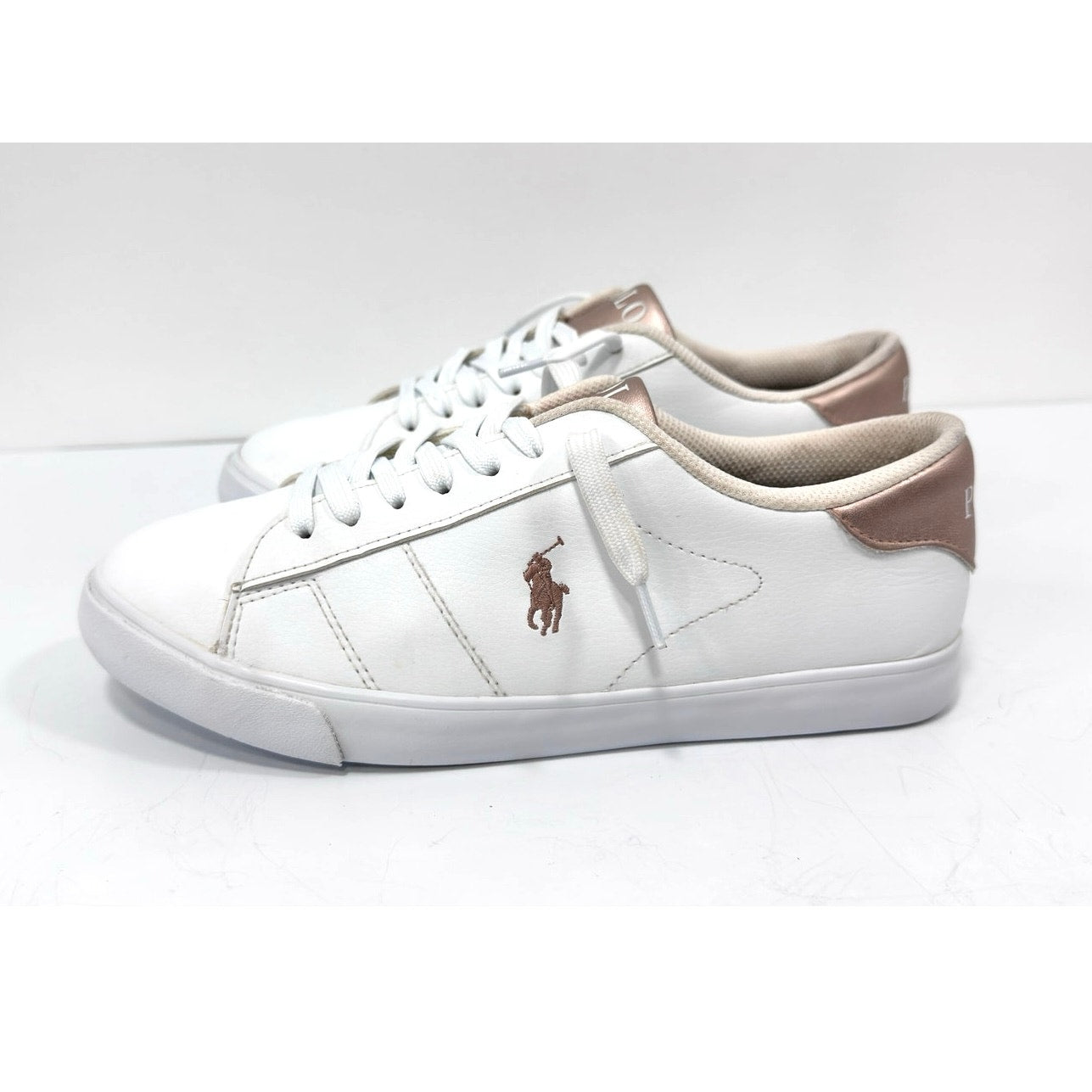 Polo Ralph Lauren White & Rose Gold Sneakers Athletic Shoes Junior 7