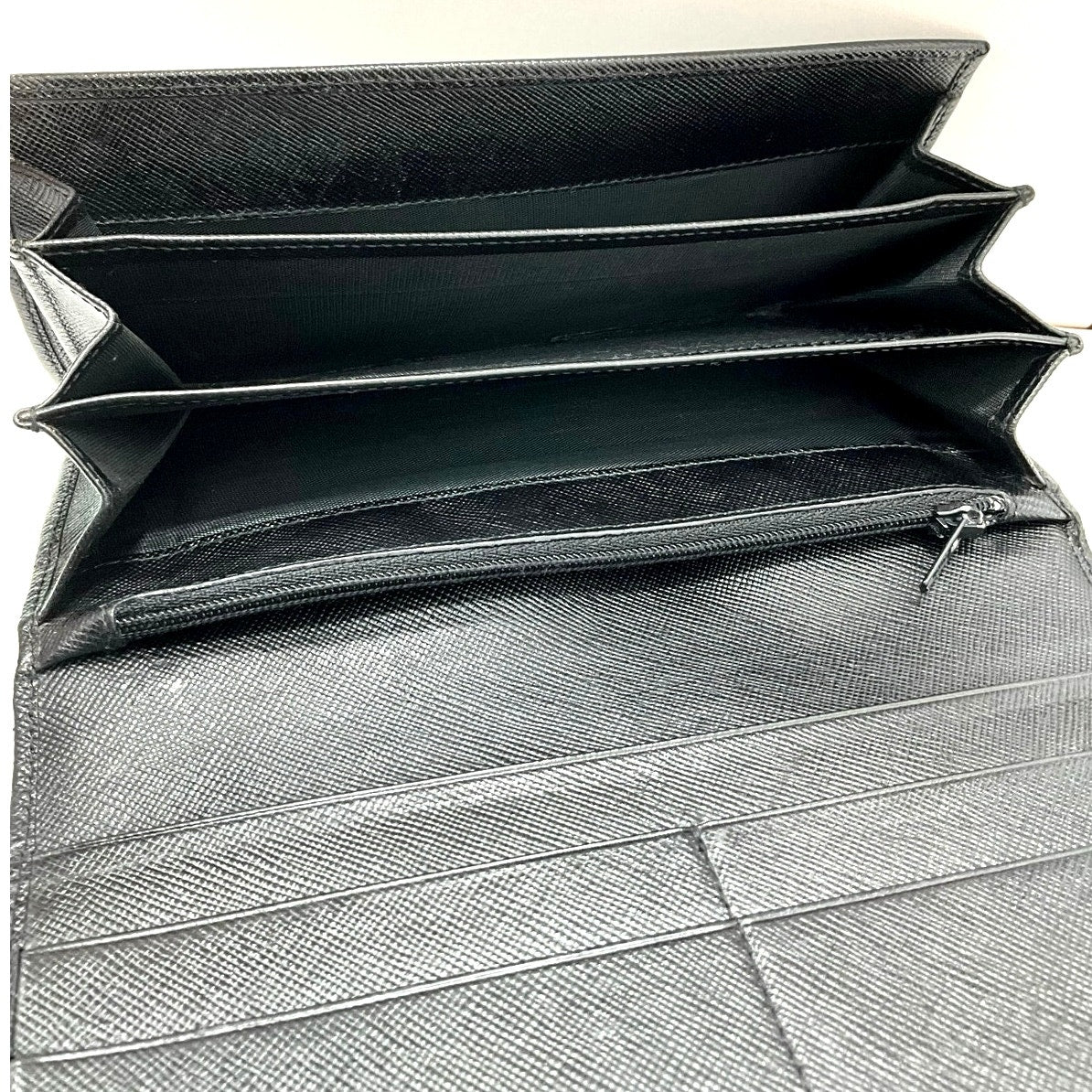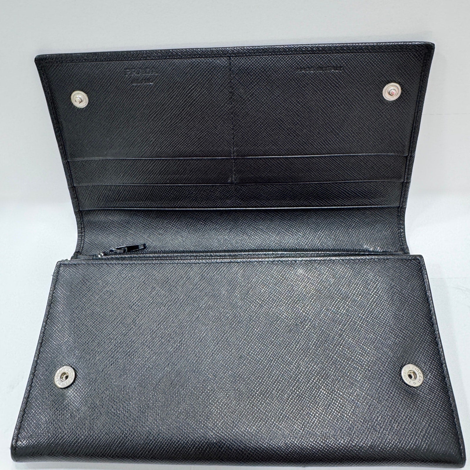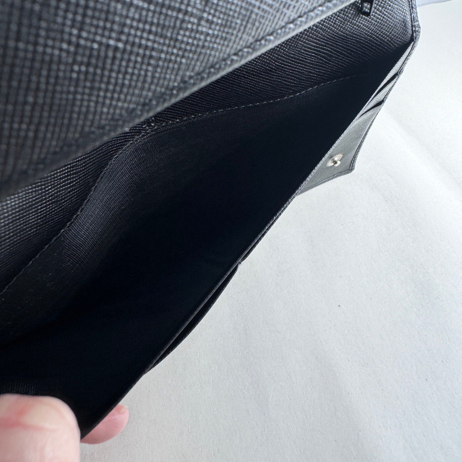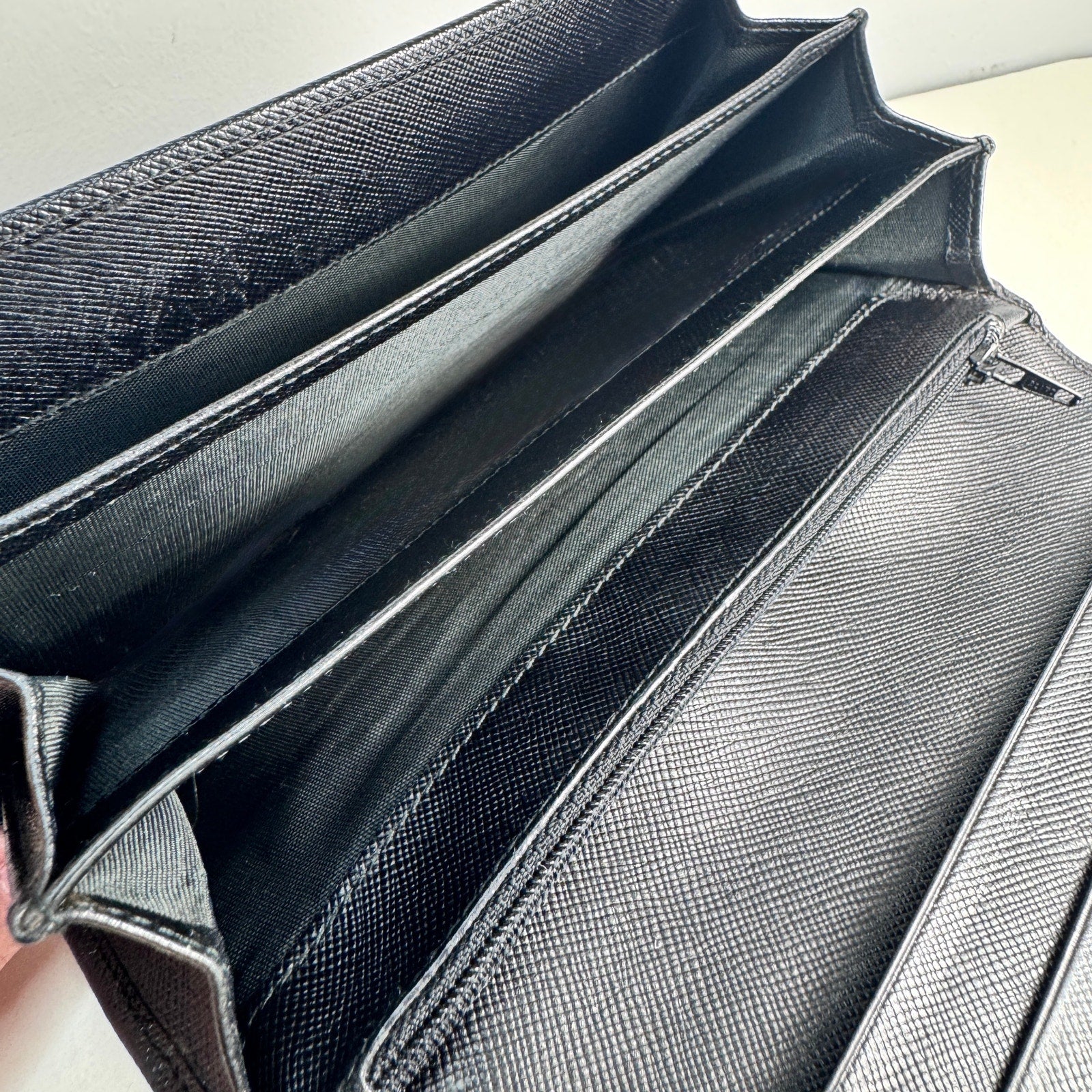 Prada Saffiano Black Leather Flap Continental Long Wallet with Chain