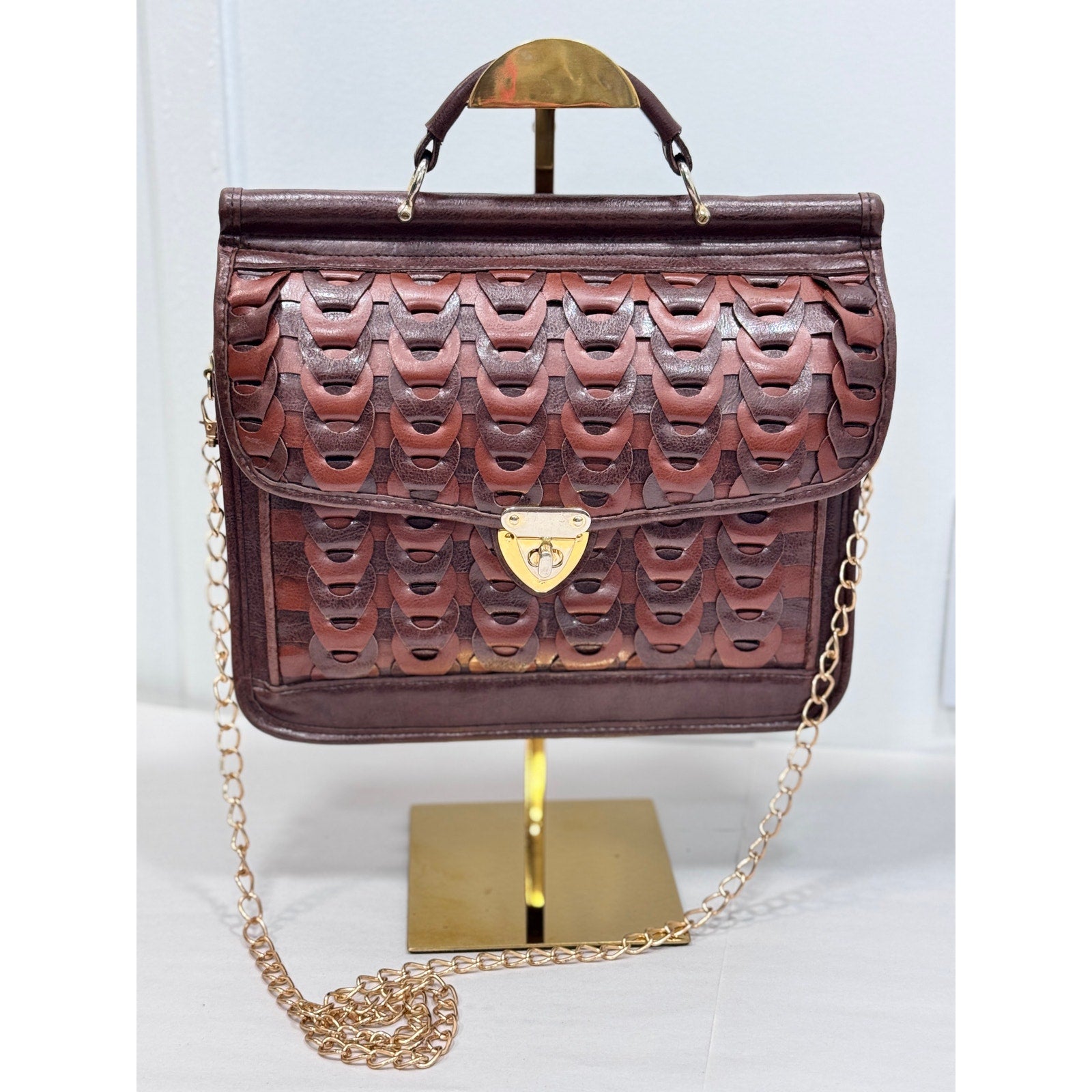 Vintage Woven Turnlock Satchel Bag Crossbody