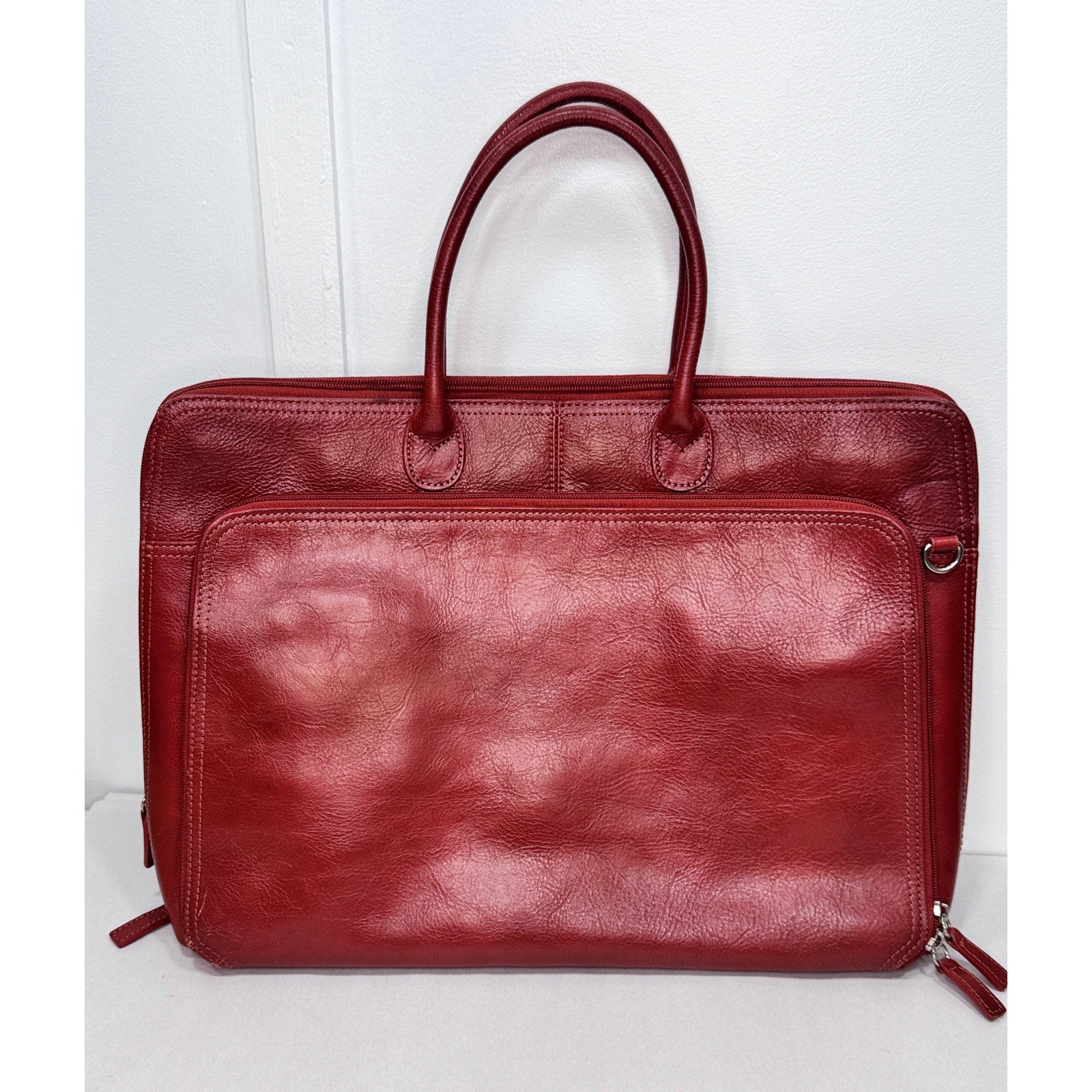 Wilsons Italian Leather Red Laptop Briefcase Tote Bag